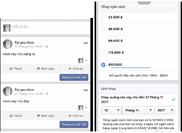 Để cho ads đó tiêu hết ngưỡng thanh toán đầu tiên (43-69k … ) thì ta tiếp tục tạo chiến dịch thứ 2 ở trên các trang bán sản phẩm. Nếu bạn muốn chắc ăn, có thể để tài khoản qua ngưỡng 220k, có thể tiêu 1 triệu mới phải thanh toán hẵng tạo quảng cáo bán sản phẩm dịch vụ.