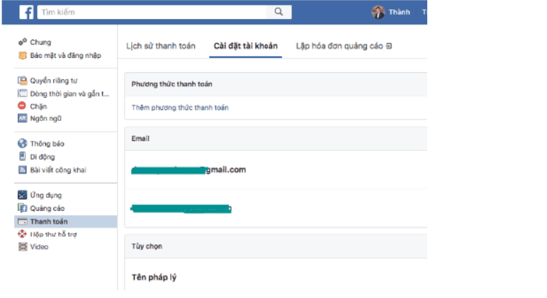 Nếu sử dụng app Facebook bạn có thể thêm thẻ trực tiếp tại phần Cài đặt, Thanh toán trong app.